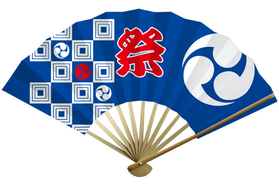 商品名 :お祭り扇子/左三つ巴 青