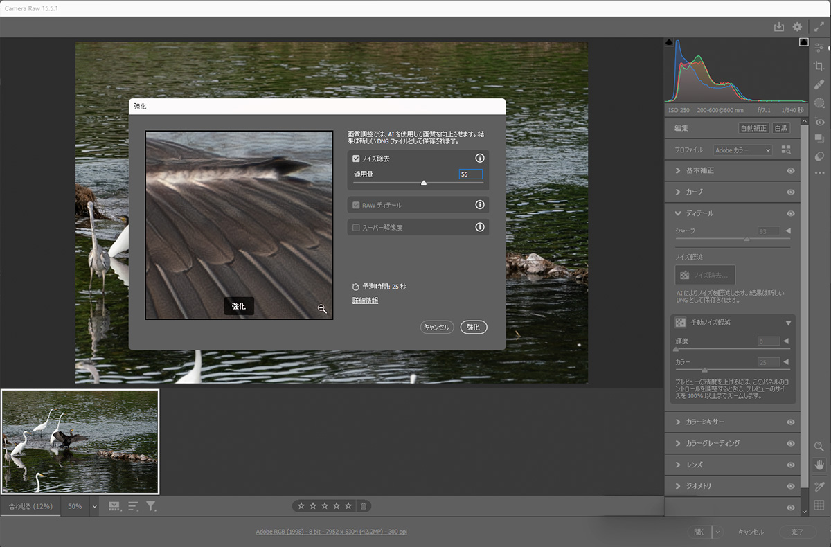| RAWデータを現像してノイズを消す: |