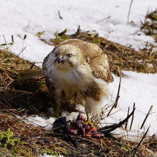 ノスリがオオバンを食らう 複数の鳶が集まってたので何かと思えばノスリがオオバンを捕まえて食べている最中でした。かなり強烈なシーンでノスリの眼が完全に猛禽類の眼になってました。周りに鳶が集まってますが手が出せません。ノスリ恐るべし。 タグ: ノスリ Buzzard 猛禽類 捕食 野鳥写真 野鳥撮影 野鳥観察 バードウォッチング 前の記事 次の記事