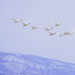 コハクチョウ達の北帰行への練習の始まりか 2月に入り北帰行への練習が始まったのかな?田んぼで寝ているか餌を食べているだけのコハクチョウ達がやたら飛んでいる。それも時間をかけて。このような光景は北帰前の湖北でよく見たがそれに似ている。まだ2月に入ったばかり。でも2月の中頃から北帰行が始まる。下旬にはオオワシと共に殆どがこの地を去る事を考えると北帰行への練習が始まってもおかしくない。あと3週間ほどか。 編隊を組む練習なのかな?ホワイト・インパルスだね。 タグ: コハクチョウ, 湖西, 湖西のコハクチョウ, 滋賀県高島市, 野鳥, 野鳥写真, 野鳥撮影, 野鳥観察 前の記事 次の記事