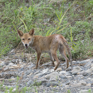 き・つ・ね ?? 本日は鳥ではなくキツネのお話。目の前を向こうからこちらを見ながらトットコ、トットコやってきて通り過ぎたときは、柴犬の子供かと思った。でもこんな場所で子犬1匹はおかしいと思いよ~く見るとそれはキツネであった。乳房の感じからメス。痩せて皮膚に病があるようだ。安曇川の河口で何をしてるんだろう。6月にはイノシシの親子が現れたりキジが居たり。次は何の動物に会えるのだろう。 タグ: きつね, キツネ, ホンドキツネ, 狐, 🦊 前の記事 次の記事