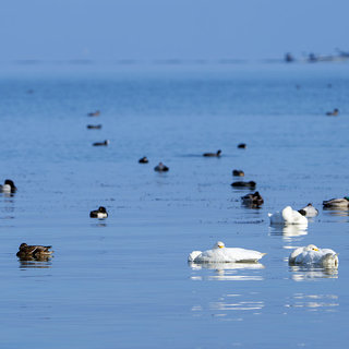 湖西の琵琶湖のコハクチョウ 渇水の影響か高島市新旭水鳥観察センター沖にいたコハクチョウ達は12月10日の時点では松の木内湖と針江浜 湖岸緑地公園の湖畔に分散しておりました。お天気も快晴で風もなかった為、非常に穏やかな湖面でした。こんな穏やかな日のコハクチョウ達はほとんどがお昼寝中です。琵琶湖はよく荒れるのでこんな日もアリかと思います。蜃気楼で沖で釣りを楽しむボートが浮いて見えました。 タグ: コハクチョウ, 滋賀県高島市, 琵琶湖, 琵琶湖のコハクチョウ, 野鳥, 野鳥写真, 野鳥観察 前の記事 次の記事