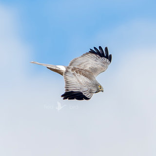 いつもはコハクチョウが集う田んぼの上空でハイチュウさんことハイイロチュウヒが低空飛行を繰り返していた。普段お目にかかることがないのでハイイロチュウヒだと気づくのに少し遅れたがワンショットおさめることがラッキーだった。写真をご覧頂くとわかるかと思いますが名前の通り体全体が灰色を帯び羽の先が黒く尾尻の付け根が白いのが特徴でこの個体はオスでした。