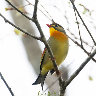 キビタキも負けそうなくらい綺麗で大きな鳴き声がするのでそーっと探してみるとそこにはソウシチョウが複数いた。半年ぶりの再開という事は冬場は山の中腹よりもう少し低いエリアに居たようだ。見た目が艶やかで鳴き声も綺麗な鳥で人気がありそうだが東南アジア原産の鳥で特定外来生物に指定されている。何故、特定外来生物が居ると具合が悪いかというと琵琶湖のバスと同じ理屈でメジロやコルリやウグイスなど在来種の野鳥と繁殖場所が重なりあうとこれらを捕食するためカケスなど大型の野鳥を呼び込み在来種の生存そのものを危うくする率が上がる為、日本国内では増えてはいけない鳥たちである。とはいってもすでに遅し昨日の鳴き声を聞いていると結構増えているようで繁殖率も半端じゃないようだ。確認した場所がウグイスやヤマガラ、コガラ、エナガなどの生息域なだけにソウシチョウが増える事に懸念を抱く。